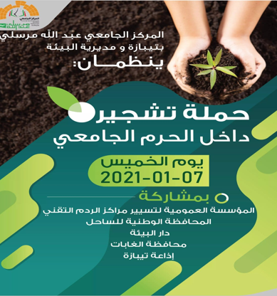 دعوة لحملة تشجير بالمركز الجامعي مرسلي عبد الله يوم 07 جانفي 2021